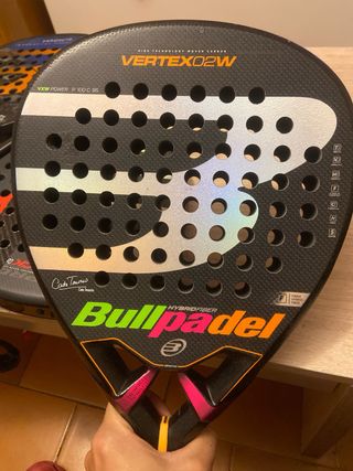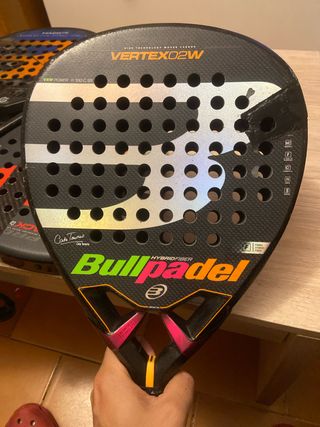 Pala de pádel Bullpadel Vertex 02W. - Pala de pádel Bullpadel Vertex 02W. - Marco de carbono. - Tecnología High Technology Woven Carbon. - Modelo VXW Power P 100 C 95. - Diseño con logo Bullpadel y detalles en colores vibrantes.