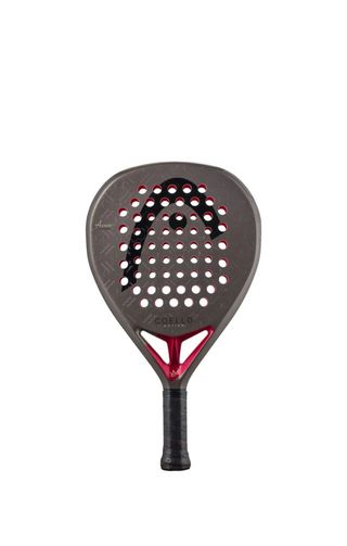 Pala de pádel Head Coello Team. - Diseño moderno en tonos grises y detalles en rojo. - Logo de Head en negro. - Nombre 'COELLO TEAM' visible en la pala.