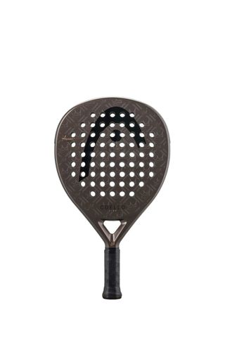 Pala de pádel Head Coello Vibe. - Diseño en tonos oscuros con detalles gráficos. - Logo de Head en el centro. - Nombre 'COELLO' visible en la parte inferior.