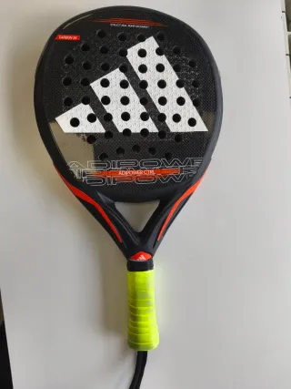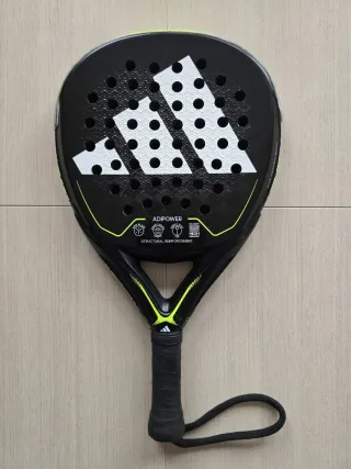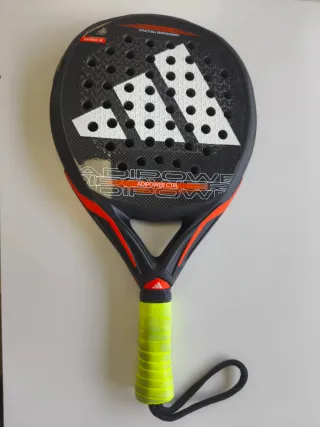 Pala de pádel Adidas Adipower con diseño en negro y detalles en amarillo neón. Pala con un año de uso, no muy frecuente. Esta con protector de los bordes y overgrip recién colocado sin usar. Se incluyen 2 overgrip y mochila original. - Diseño con el logo de Adidas. - Refuerzo estructural.