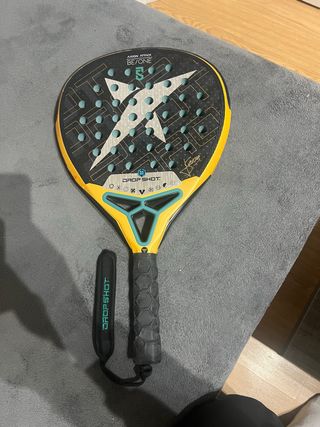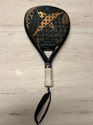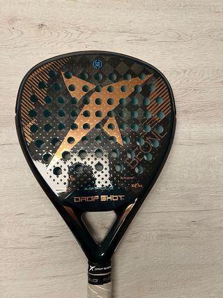Pala de pádel Drop Shot modelo Miracle Pro. - Diseño en color negro y cobre. - Incluye funda protectora. La vendo porque no me adapto a la pala.