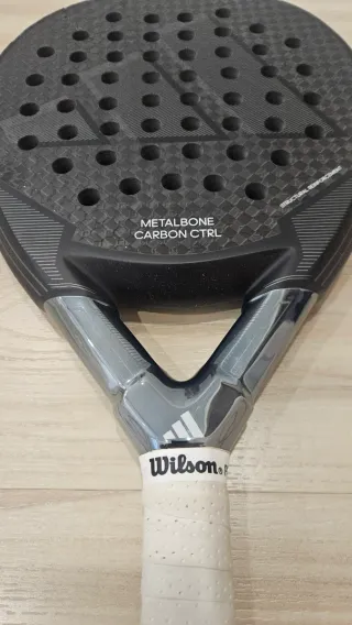 Pala de pádel Adidas Metalbone Carbon Ctrl. Diseño moderno y acabado en carbono para un jugador avanzado que quiera control - Forma redonda. - Marco de carbono. - Superficie de carbono. - Goma Black Eva. Vendo por haber comprado una pala de potencia. Tiene una pequeña grieta en un borde como se ve en la foto.