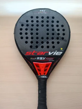 Pala de pádel StarVie R9.V Carbon Power Edition. - Pala de pádel de carbono. - Modelo R9.V. - Edición Power. - Marca StarVie. Pala muy poco usada, lleva protector incluido
