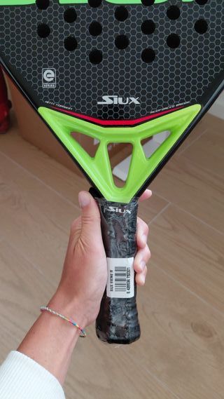 Se venden dos palas de pádel de la marca Siux, completamente nuevas y sin estrenar. Diseño moderno en negro y verde.