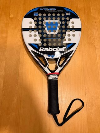 Pala de pádel Babolat Viper Tour con núcleo de 38mm. Ultra power core - Diseño en blanco, negro y azul. - Incluye correa de seguridad negra. - Roce en lateral (foto) no afecta al juego - Juego potencia
