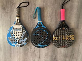 3 palas de padel. Pala padel session, pala toro modelo URO y pala Siux modelo trilogy hybrid, necesita reparación en una esquina. Si necesitas más fotografías pídemelas