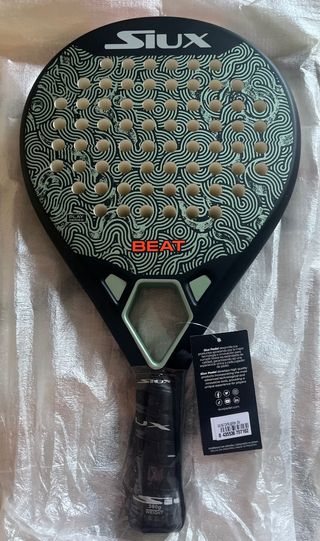 Pala completamente nueva, usada en pocas clases, únicamente tiene la goma de protección un pelín levantada (hay foto) pero en absoluto impide su uso, tiene goma de protección adicional en el mango, que se puede mantener para mayor resistencia o al quitarla está la original (a gustos). Precio origina 79,90 euros