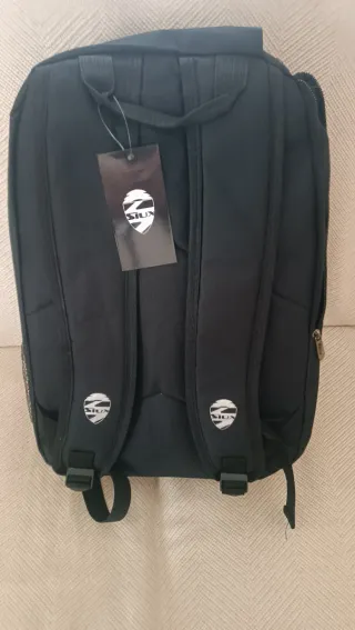 Mochila paletero de la marca Siux, ideal para llevar tu pala y equipación de pádel. - Color negro con detalles en azul. - Diseño funcional. - Compartimento para pala y accesorios. - Bolsillos laterales de malla.