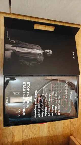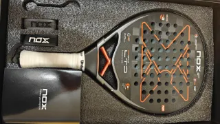 Pala de pádel NOX AT2 LTD Edición Limitada 2023. Cuenta con un pequeño salto de pintura (no grieta) y desgaste en un lateral del protector. 8-9 meses de uso, sigue manteniendo la rigidez de la goma, dureza medio-dura. - Diseño moderno con detalles en naranja. - Acabado mate. - Incluye funda. - Incluye recambio de la cuerda de seguridad.
