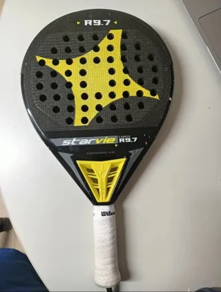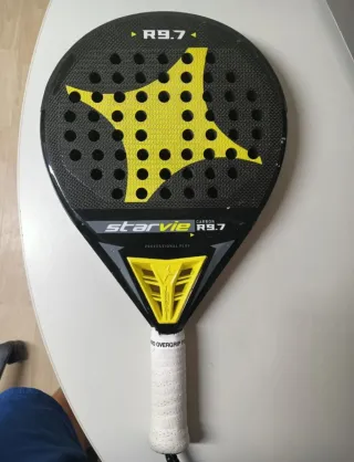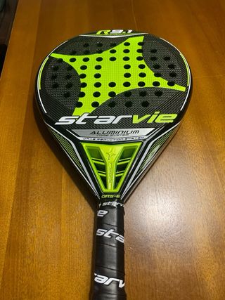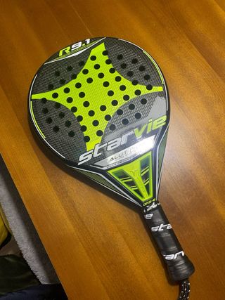 Pala de pádel Starvie R9.1 sin estrenar. Es una pala ligera y manejable, ideal para jugadores de nivel avanzado. - Fabricada con carbono y aluminio. - Diseño en negro y verde lima. - Impecable estado. Nueva, sin usar.