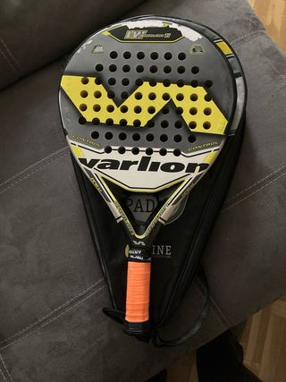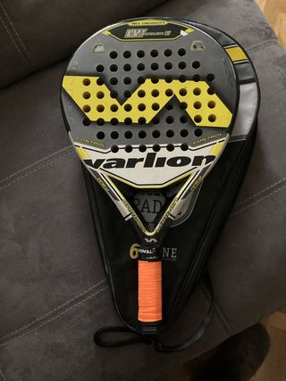 Pala de pádel Varlion LW Carbon con diseño en gris y amarillo. Incluye funda.