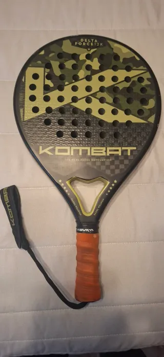 Pala de pádel Kombat Delta Force 12K con diseño camuflaje. - Pala de pádel Kombat. - Modelo Delta Force 12K. - Diseño camuflaje. - Incluye correa. - Empuñadura naranja.