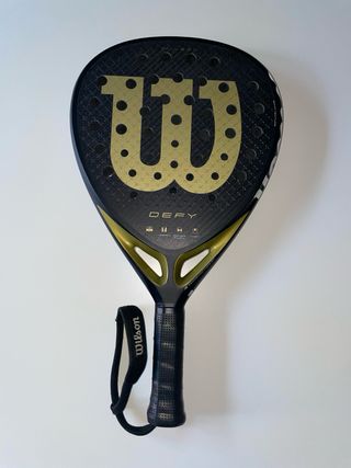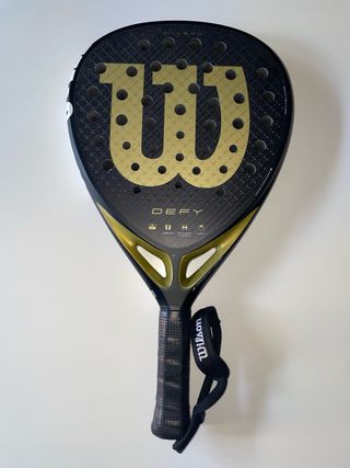 Vendo pala de pádel Wilson Defy BK. Se trata de una pala con diseño elegante en tonos negro y dorado, con acabado en carbono rugoso 3K para mayor control y potencia en cada golpe. Tiene forma de lágrima y un punto dulce amplio que la hace ideal para jugadores de nivel intermedio o avanzado que buscan equilibrio entre control y potencia. El núcleo está compuesto por espuma EVA Soft, que mejora la salida de bola y absorbe mejor las vibraciones. Está en perfecto estado, apenas ha tenido uso únicamente tiene el protector un poco rayado como se ve en las fotos, se entrega tal como se ve en las fotos,con su cuerda y puño original.
