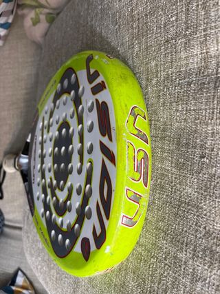 Pala de pádel Drop Shot Axion Attack con muy poco uso, lo que ha durado el único grip que se ha usado en la pala, tiene una movilidad excelente a pesar de su balance medio-alto, alta potencia, goma eva y carbono 18K, grip y protector superior hecho a medida, nuevos. Es la pala de Jon Sanz en 2024, la vendo porque fue un regalo y la tengo como segunda pala, la cual he usado en contadas ocasiones.