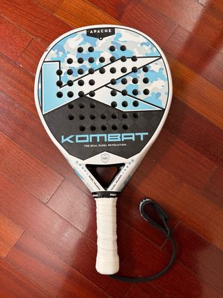 Pala de pádel Kombat Apache Ice 18K. Usada durante 1 año hasta que cambié de pala. Las dos caras de la pala están bien. Los cantos están rozados, con la pintura saltada como se ve en las fotos, pero la pala no está dañada, no tiene ninguna raja. Over grip nuevo.