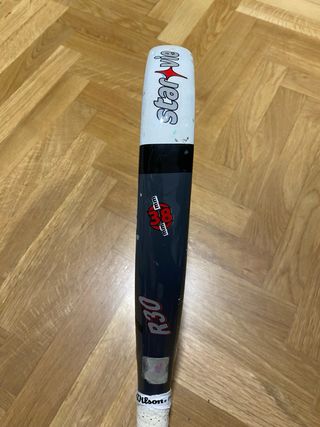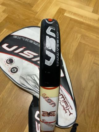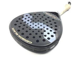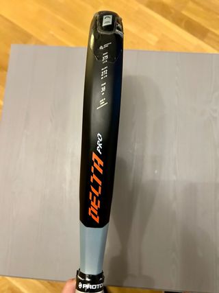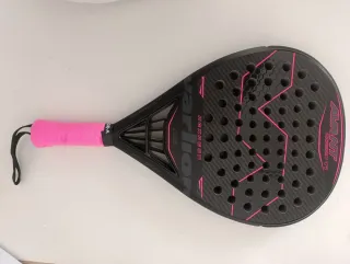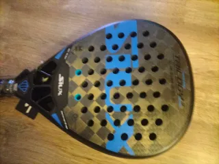 Forma lágrima, favorece la potencia en ataque. Marco de carbono para buena rigidez y durabilidad. Caras de carbono, buen golpeo y salida de bola. Núcleo de goma EVA, con tacto firme orientado al rendimiento agresivo. Balance medio‑alto, pensado para remates y juego ofensivo. Estado general: bastante uso, presenta desgaste normal por el uso (rozones en la zona superior de pintura) y ha sido reparada profesionalmente en la zona superior. Precio negociable dentro de lo razonable.