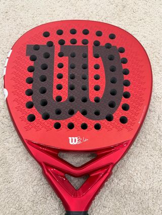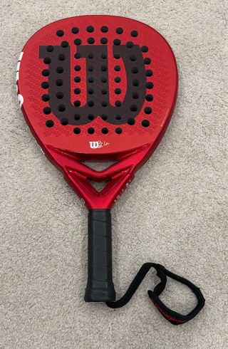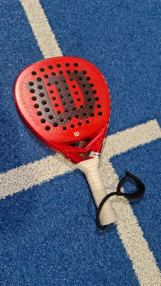 Pala de pádel Wilson Bela Elite V2.5 en color rojo. 365 gramos - Diseño moderno y llamativo. - Acabado brillante. - Incluye correa de seguridad. Solo se ha usado 5 partidos