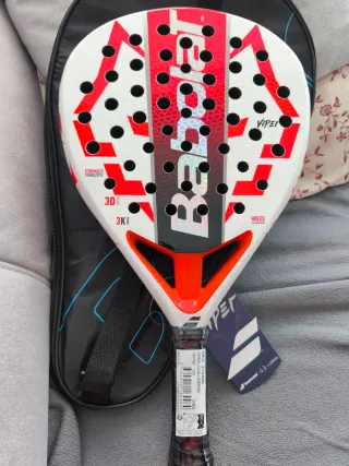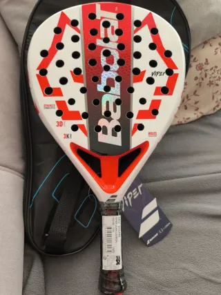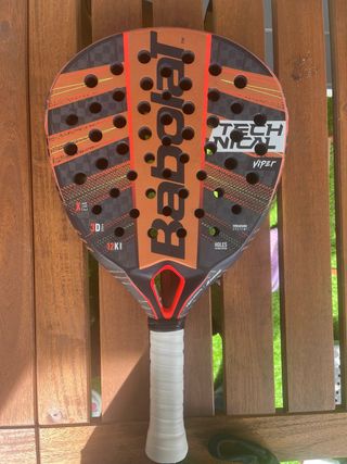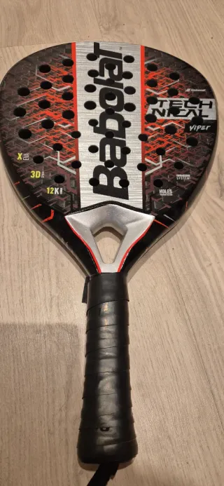 Pala de pádel Babolat Technical Viper. - Diseño en negro, rojo y gris. - Agarre blanco perforado. Precio negociable
