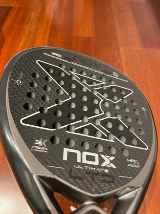 Pala de pádel NOX ULTIMATE POWER LTD CARBON. Tiene signos de uso superficiales pero que no afectan en absoluto a su rendimiento, si te gusta pegarle a la bola esta pala es un misil. - Carbono 3K - Superficie rugosa 3D - Tecnología HR3 Core+ - Peso: 360-375gr - Balance: alto - Formato: diamante2 Bolsa NOX de regalo