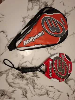Pala de pádel Bullpadel Monox 38 en color rojo y blanco. Incluye funda protectora. Poco uso.