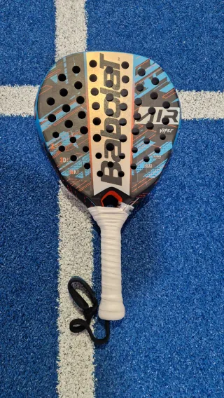 Pala de pádel Babolat Juan Lebrón Viper, edición especial. Pala en buen estado, con pequeños desperfectos estéticos por uso, tal y como se ve en las fotos. Tiene alrededor de 50 partidos.