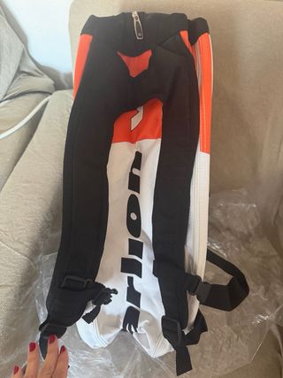 Peletero de pádel de la marca Varlion, completamente nuevo. - Diseño moderno con detalles en naranja y verde. - Asas resistentes para su transporte. -Cuenta con un espacio con cremallera para una pala -Otro espacio más amplio con doble cremallera para más palas, bolas, ropa, etc -Otro espacio para calzado -Bolsillo con cremallera para objetos de valor, cartera, llaves, etc. -se puede usar en modo bolsa con asa al hombro o como mochila ya que cuenta con ambas opciones
