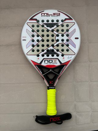 Pala de pádel NOX ML10 Pro Cup con diseño llamativo. - Pala de pádel. - Modelo ML10 Pro Cup. - Marca NOX. - Color blanco, dorado y rojo. - Incluye overgrip.