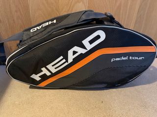 Paletero de la marca Head, modelo Padel Tour. - Color negro con detalles en naranja. - Compartimento principal en el centro - Bolsillos laterales x 2 para las palas Nunca se ha usado. Lo vendo por tener otro