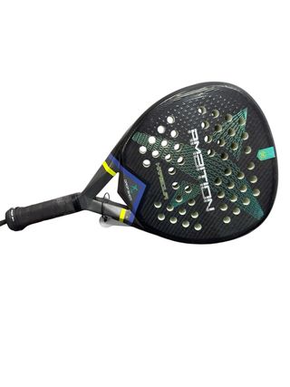 Pala de pádel con diseño moderno y acabado en carbono. - Superficie con textura para mayor agarre. - Agujeros en la cara para control del aire. - Mango ergonómico.