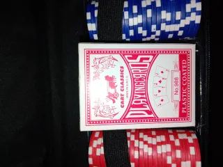 Set completo para jugar al póker. - Incluye fichas de póker en varios colores. - Incluye baraja de cartas.