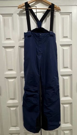 Pantalón de esquí de color azul marino, diseñado para la montaña. Pantalón para la nieve o esquiar, color azul oscuro, de niño o niña de 146 a 152 cm. de estatura (8-9 años). con tirantes ajustables, partes reflectantes, cremalleras y velcros en la zona inferior y dos bolsillos con cremallera. Utilizado en una sola ocasión. Están en perfecto estado.