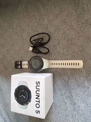 Reloj deportivo Suunto 5 en color blanco. Un accesorio ideal para tus actividades. - Diseño moderno y funcional. - Correa cómoda y ajustable. - Caja original de guardado. - Cable de carga.