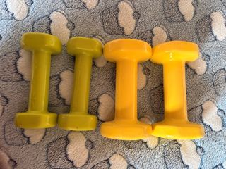 Pesas de 2kg amarillas y de 1kg verdes