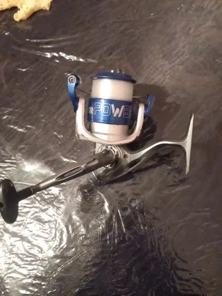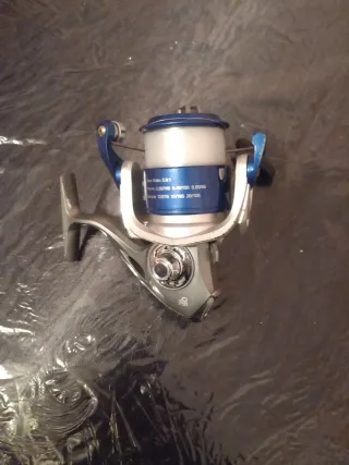 Carrete de pesca azul y plateado