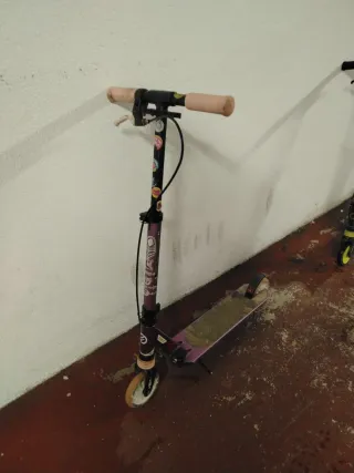 Patinete Oxelo en buen estado, listo para usar. - Color rosa y negro. - Ruedas de color rosa. - Manillar ajustable.
