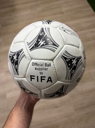 Balón de fútbol Questra Pontiac, proveedor oficial de la FIFA en 1994. Un diseño clásico para coleccionistas y amantes del fútbol. - Diseño oficial FIFA 1994. - Marca: Questra Pontiac.