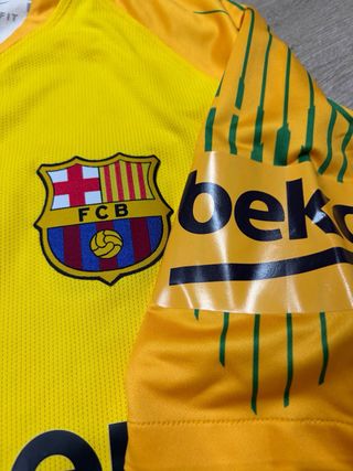 Camiseta de portero del FC Barcelona, modelo 'player issue'. Barcelona. Fcb. Fcbarcelona - Color amarillo vibrante. - Diseño con detalles gráficos en mangas. - Escudo del FC Barcelona. - Logo de La Liga en manga. - Patrocinador Beko en manga.