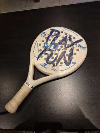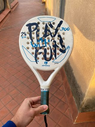 Pala de pádel infantil de la marca Artengo, modelo PR 700. - Diseño Play with Fun. - Tamaño junior. - Incluye cordón de seguridad.