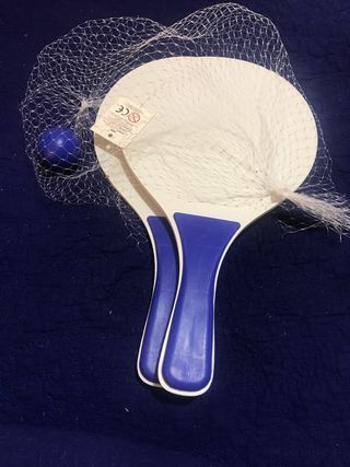 palas playa de madera y mango de plastico. Abierta red pero sin usar.
