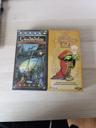 ¡Lote genial para noches de juegos rápidos y risas garantizadas! Dos juegazos en español, ambos como nuevos (solo un par de partidas cada uno): Ciudadelas (Tercera Edición) – El clásico de Bruno Faidutti. Juego de cartas de roles, construcción de ciudades y traiciones épicas. Incluye la expansión ciudadela oscura. Muy buscado y descatalogado – ¡Partidas estratégicas de 2-7 jugadores! ¡Sí, Señor Oscuro! (Segunda Edición) – El party game más loco y divertido: goblins, serviles, acusaciones disparatadas y mentiras a mansalva. Perfecto para grupos grandes (4-10 jugadores) y risas sin parar. No separo el lote, se vende tal cual