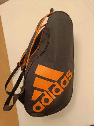 Paletero de pádel de la marca Adidas, como nuevo, se vende por falta de uso. - Color negro con detalles en naranja. - Diseño con el logo de Adidas. - Correa ajustable para colgar. - Bolsillo para la pala + bolsillo grande para ropa y accesorios.