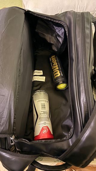 Paletero de la marca Adidas en color negro. Diseño deportivo y funcional. Tiene un compartimento para las palas y otro grande para el resto. Algunas marcas de uso que se ven en las fotos, lo vendo por haberme regalado otro. - Logo de Adidas en blanco. - Tres franjas blancas características de la marca. Bullpadel overgrip pala padel nike