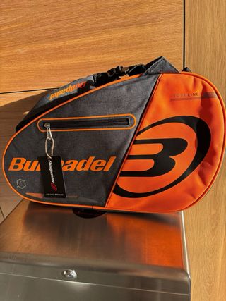 Paletero Bullpadel en perfecto estado, usado solo una vez. - Diseño en color naranja y negro. - Logo de Bullpadel visible.