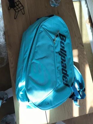 Paletero Bullpadel en color celeste, sin estrenar. - Diseño moderno y funcional. - Logotipo de la marca visible.