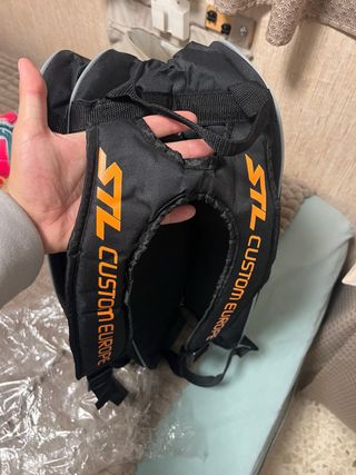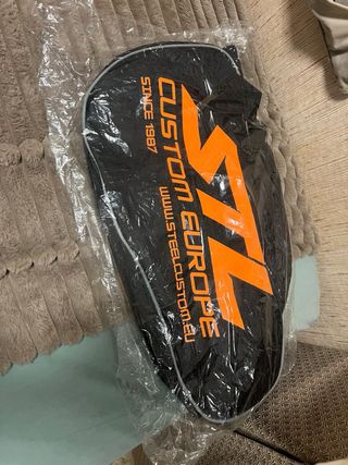 Paletero de la marca Steel, modelo Custom Europe. - Color negro con detalles naranjas. - Diseño moderno y funcional.