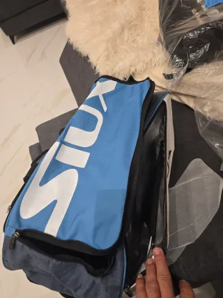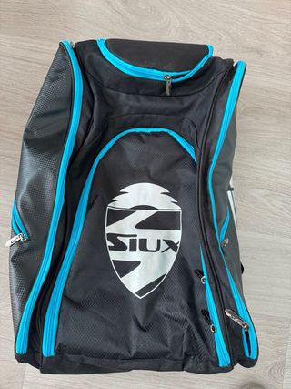 Como nuevo, solo se ha usado dos veces. Negro y azul. Es de la marca Siux, tiene dos compartimentos independientes para palas y un compartimento central bastante grande. Tiene dos opciones, llevarlo de las asas o llevarlo colgado como mochila