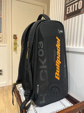 Paletero de pádel Bullpadel en color naranja y negro. - Diseño moderno y funcional. - Compartimento principal amplio. - Bolsillo térmico para palas. Paletero comprado hace poco y usado una o dos veces, está superbién, ya que tiene un montón de espacio para guardar ya sea cualquier tipo de ropa o palas. Se vende por falta de uso. NO DUDE EN ESCRIBIRME SI TIENE ALGUNA DUDA