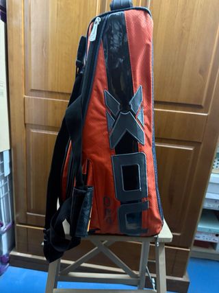 Paletero de la marca NOX, con un diseño moderno y llamativo. - Color naranja y negro. - Compartimentos amplios para equipamiento deportivo. - Correas ajustables para mayor comodidad.