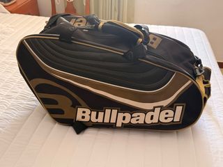 Paletero de la marca Bullpadel en color negro y detalles dorados. Diseñado para transportar tu equipación de pádel. - Compartimentos amplios. - Asas acolchadas para mayor comodidad. - Diseño moderno y deportivo.