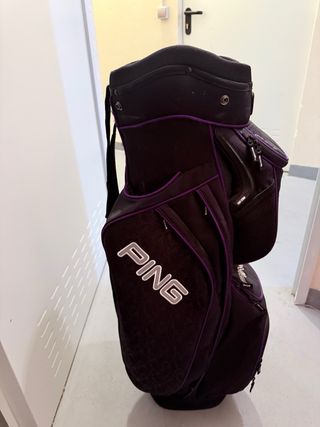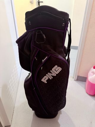 Bolsa de golf PING de color negro con detalles en morado. - Diseño elegante con el logo PING. - Compartimentos amplios para palos y accesorios. - en perfecto estado vendo por falta de uso.